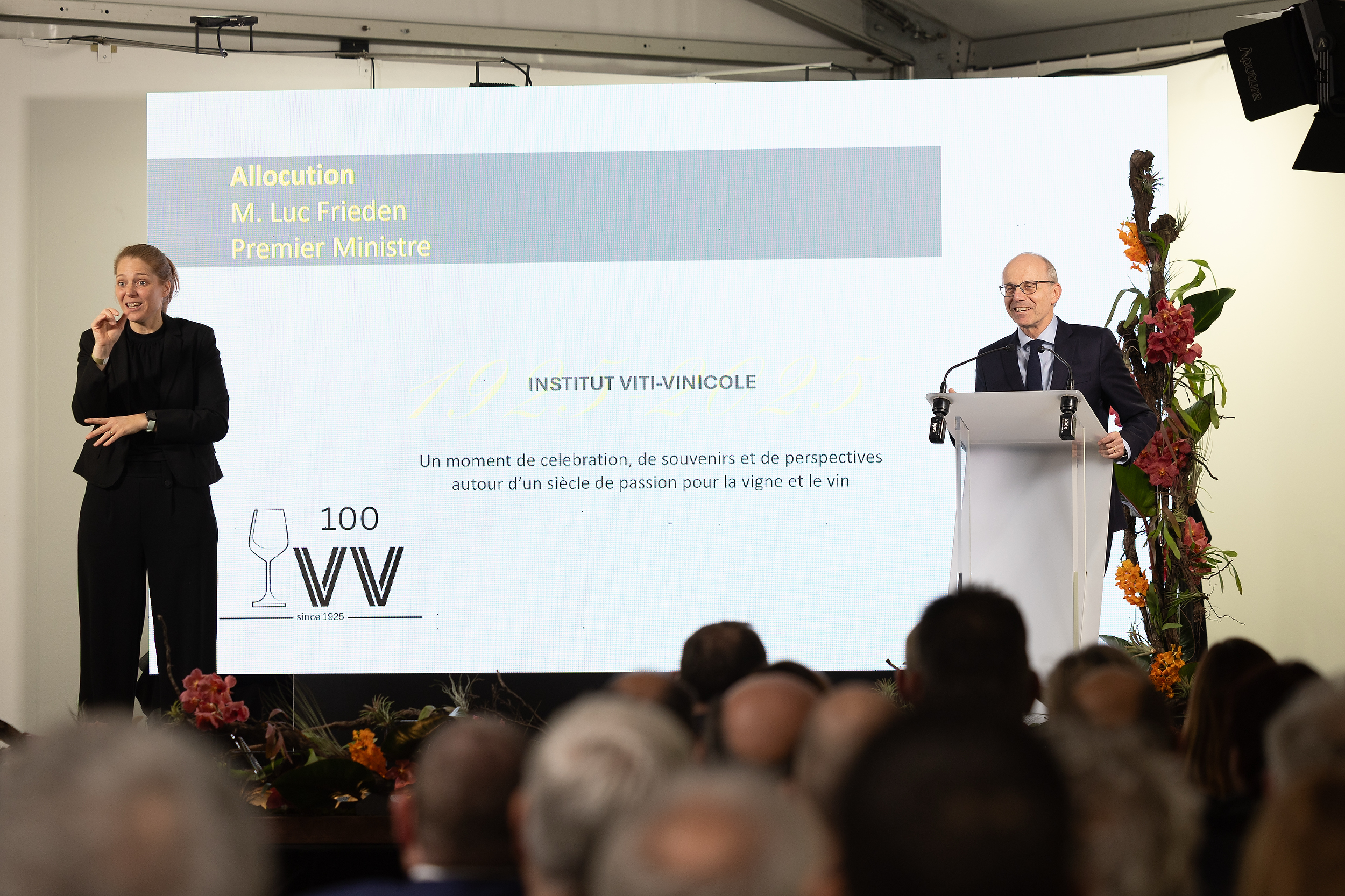 L’Institut Viti-Vinicole a célébré, le 27 novembre, son centenaire à l’occasion d’une Séance académique officielle organisée dans le grand chapiteau installé sur le Glacis à Luxembourg-Ville. Cet événement solennel et riche en émotions a réuni de nombreuses personnalités de premier plan ainsi qu’un large public composé de collaborateurs, anciens collaborateurs, partenaires et acteurs majeurs de la filière viticole luxembourgeoise.